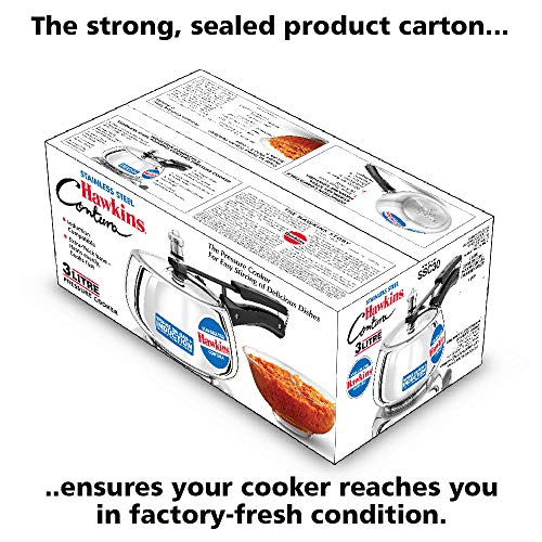 Each pressure cooker made by Hawkins features an inside fitting lid. This design is inherently safer than conventional pressure cookers. To open any Hawkins cooker, you have to first lower the lid slightly into the body of the cooker; and that cannot be done until the steam pressure inside the cooker falls to a safe level. Thus Hawkins pressure cookers are pressure-locked for safety - like a jetliner door!