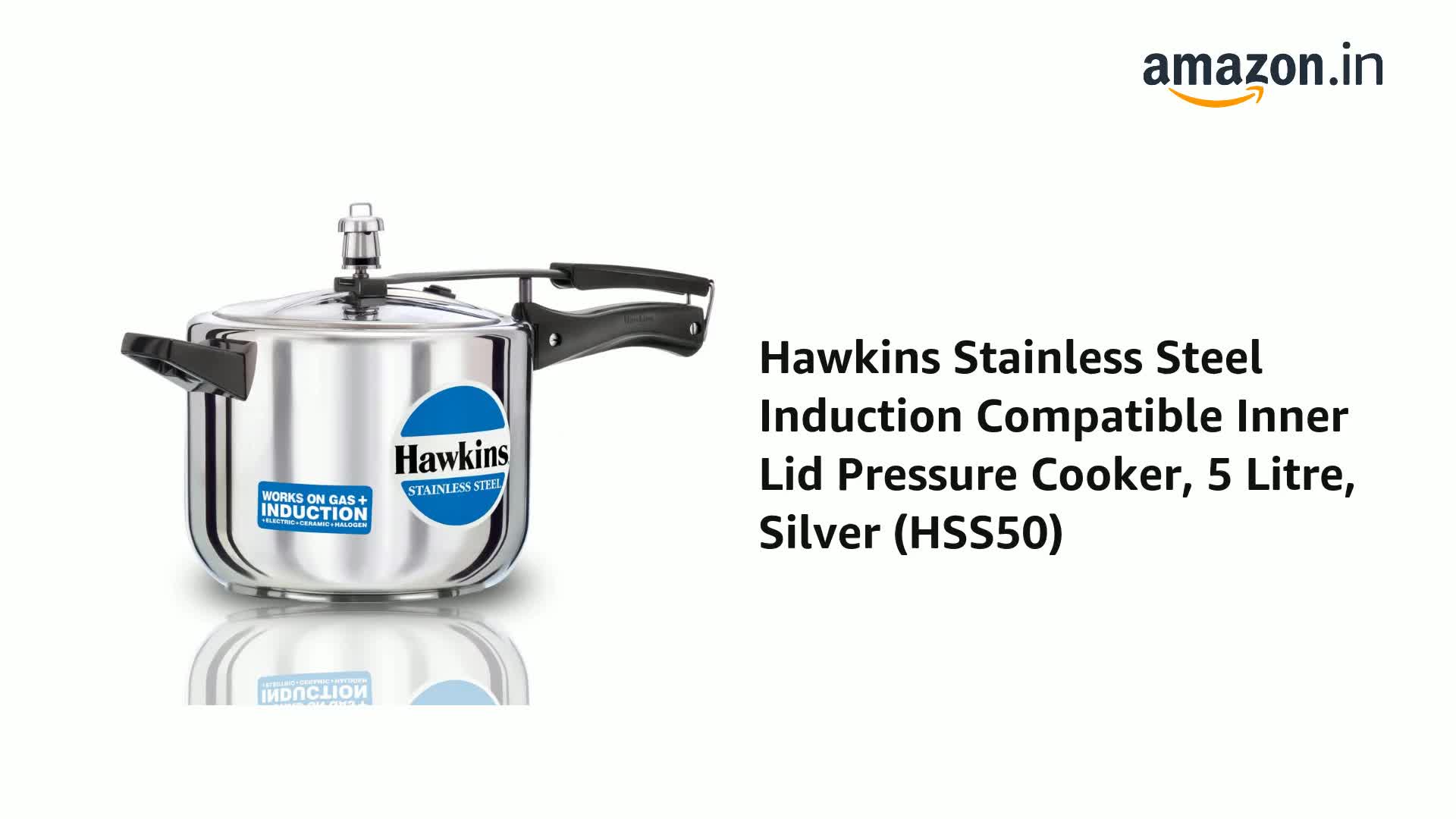 Hawkins Stainless Steel Induction Compatible Pressure Cooker 5 Litre Silver (HSS50)