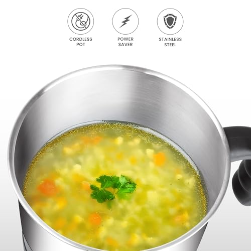 Go Electro Cooker 1.2 Stainless Steel comes with Double Walled body & Auto Cut-off for long lasting used. Detachable 360 Degree Connector with Cool touch body and cordless pot. Sturdy handle lets you touch it immediately after it stops functioning without having to worry about burning your hands. Wide mouth for easy cleaning Lid for convenience.. Power: 600 Watts. This Electric Cooker have built-in safety features like automatic shut-off. Once the water reaches its boiling point or the kettle becomes empty the kettle will turn off automatically preventing overheating or potential accidents. With an electric kettle you can easily and quickly boil water for various purposes such as making hot beverages like tea coffee or hot chocolate preparing instant soups or noodles or even sterilizing baby bottles. Electric Insta Cooker have a detachable base making them convenient to lift and pour without being restricted by a cord. The base is used to connect the kettle to a power source and provides the heating element. Sturdy handle with grooves lets you touch it immediately with better grip after it stops functioning without having to worry about burning your hands. Wide mouth for easy cleaning. It has elegant glass lid with steam vent.