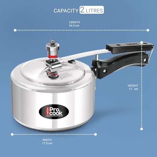 • Color: Silver; Material: Aluminium; Package Content: 1 - Piece Pressure Cooker (2 litre); Dimension in cm (L x W x H): 34.5 x 17.5 x 17