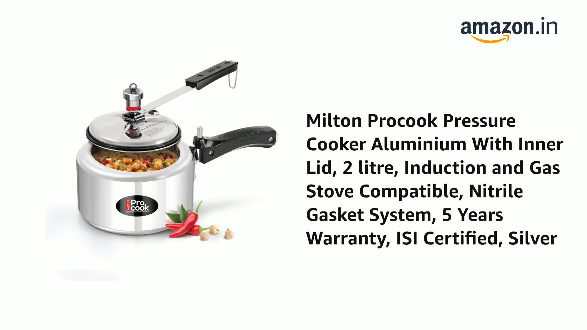 Milton Procook Pressure Cooker Aluminium With Inner Lid, 2 litre, Induction and Gas Stove Compatible, Nitrile Gasket System, 5 Years Warranty, ISI Certified, Silver