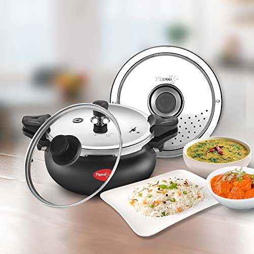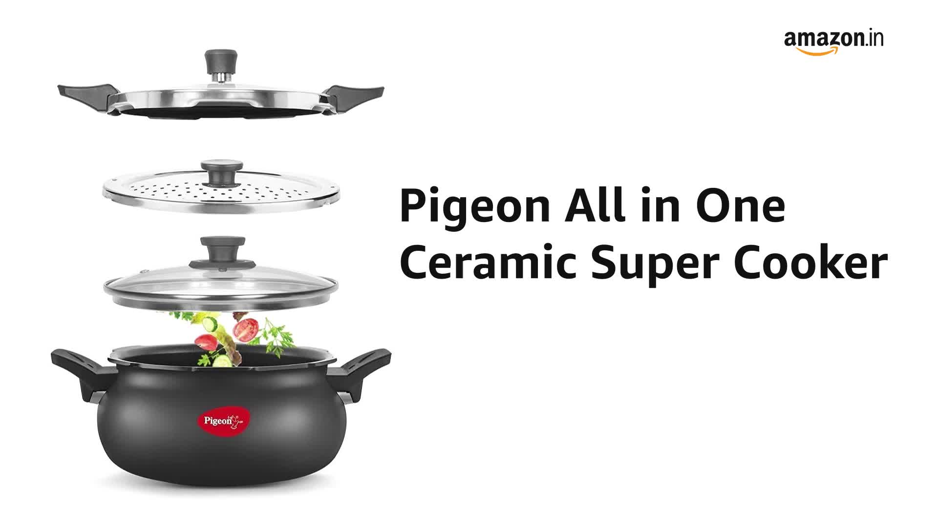Pigeon by Stovekraft All in One Ceramic Super Outer Lid Cooker 5 Liters Black/Transparent - Aluminium & Stainless Steel