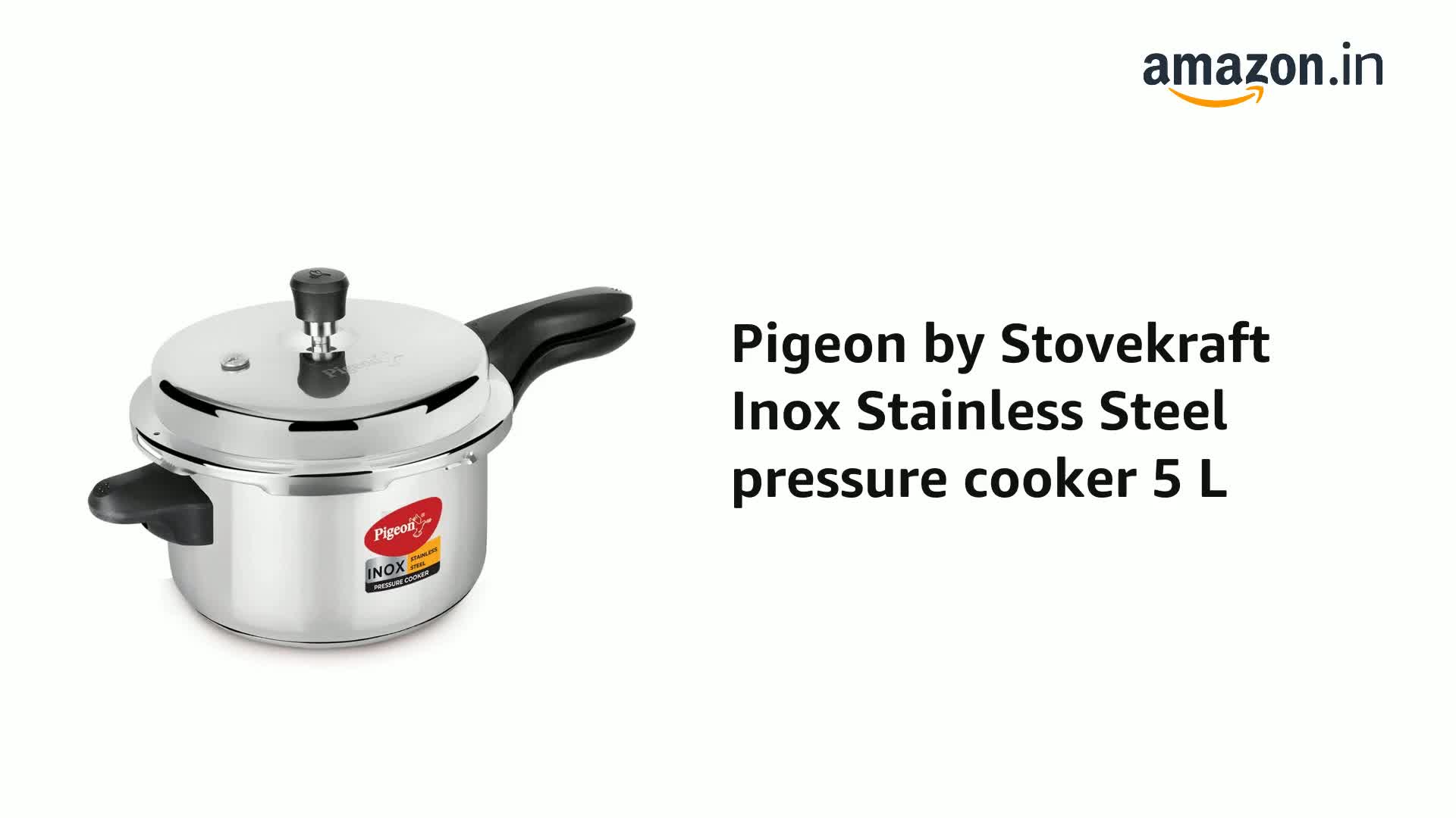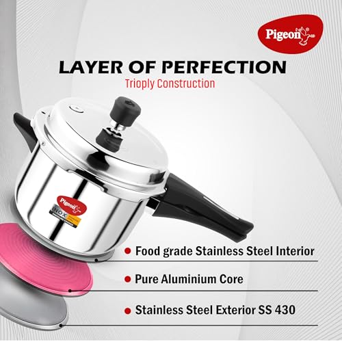 Size:5litersThe Pigeon Special stainless steel INOX Presure Cooker brings to you the beauty and dazzle of stainless steel with unbeatable toughness and unmatched style. It has a Steel sandwich base which covers entire Presure cooker bottom for efficient heat distribution. You can cook your food faster on all types of heat sources and this versatile Presure cooker provides you maximum utility.