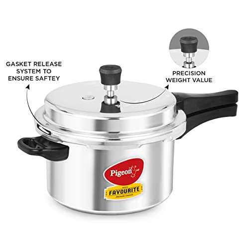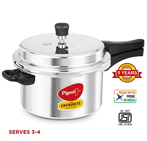 Made from best quality aluminium confirming to IS 21:1992 Pigeon gaskets are made from superior quality food grade nitrile rubber confirming to IS 7466:1994 Injection moulded user friendly handles Color: Silver Material: Aluminium Package Contents: 1-Piece Pressure Cooker (5 Litres)