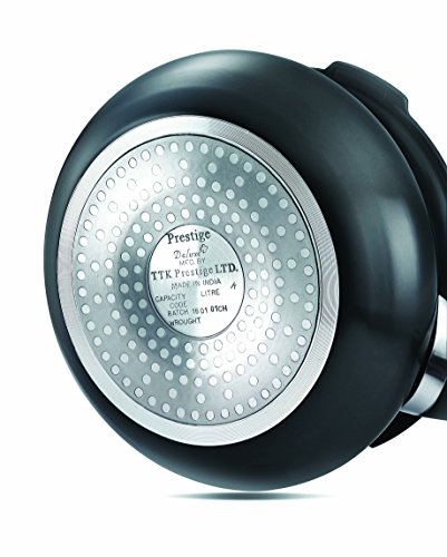• BASE: Prestige Deluxe Duo+ HA base is Stainless steel perforated (holes) plate machine pressed to Aluminium cooker base. Apart from being compatible with induction cooktops the unique base ensures even heat distribution without heat spots.