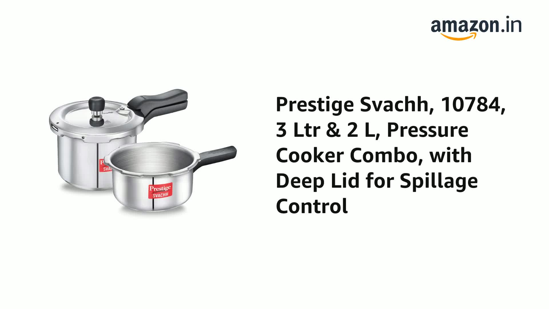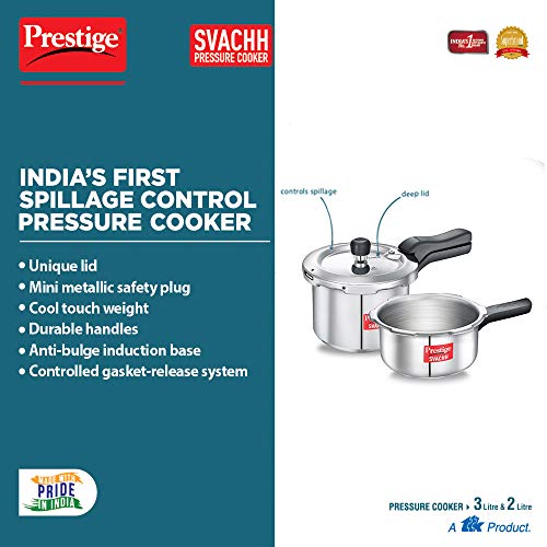 1 x Prestige Svachh 10784 3 Ltr & 2 L Pressure Cooker Combo with deep lid for Spillage Control