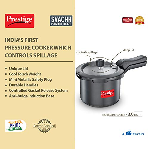 1 x Prestige Svachh 3 Litre Pressure Cooker with hard anodized Body (Black)