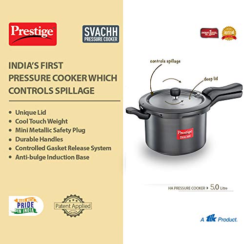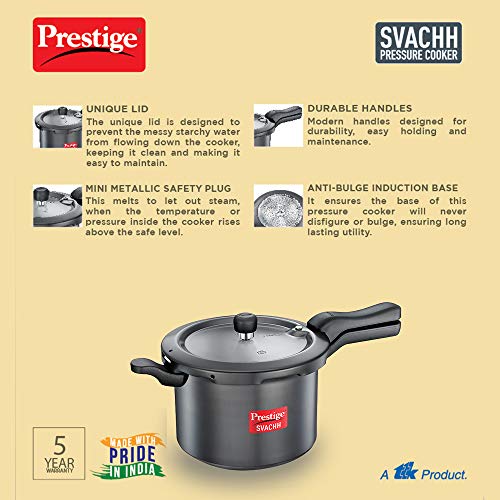 1 x Prestige Svachh 5 Litre Pressure Cooker with hard anodized Body (Black)