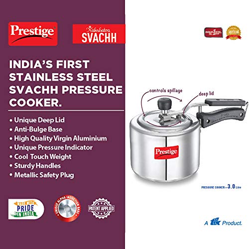 Prestige Svachh, 10730, 3 Liters, Straight Wall Aluminium Inner Lid Pressure Cooker, With Deep Lid For Spillage Control - Silver