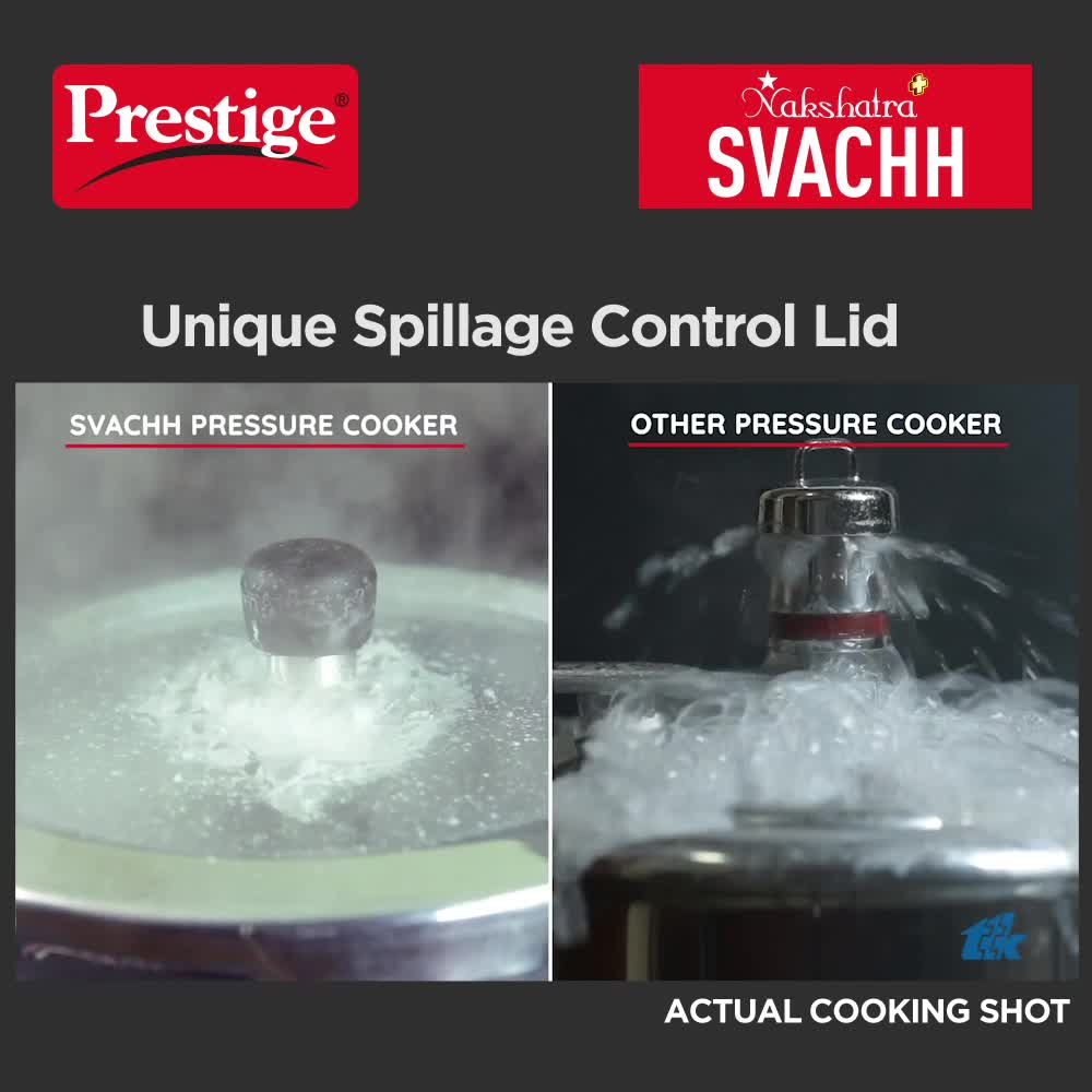 Pattern:CookerBring home a cooker that helps you keep the kitchen clean and safe. The Prestige Nakshatra Svachh Pressure cooker comes with a unique lid that contains any spillage that might occur during the course of cooking and prevents the messy liquid from dripping down. Moreover it with added safety features that make it one of the most reliable cookers for your kitchen.