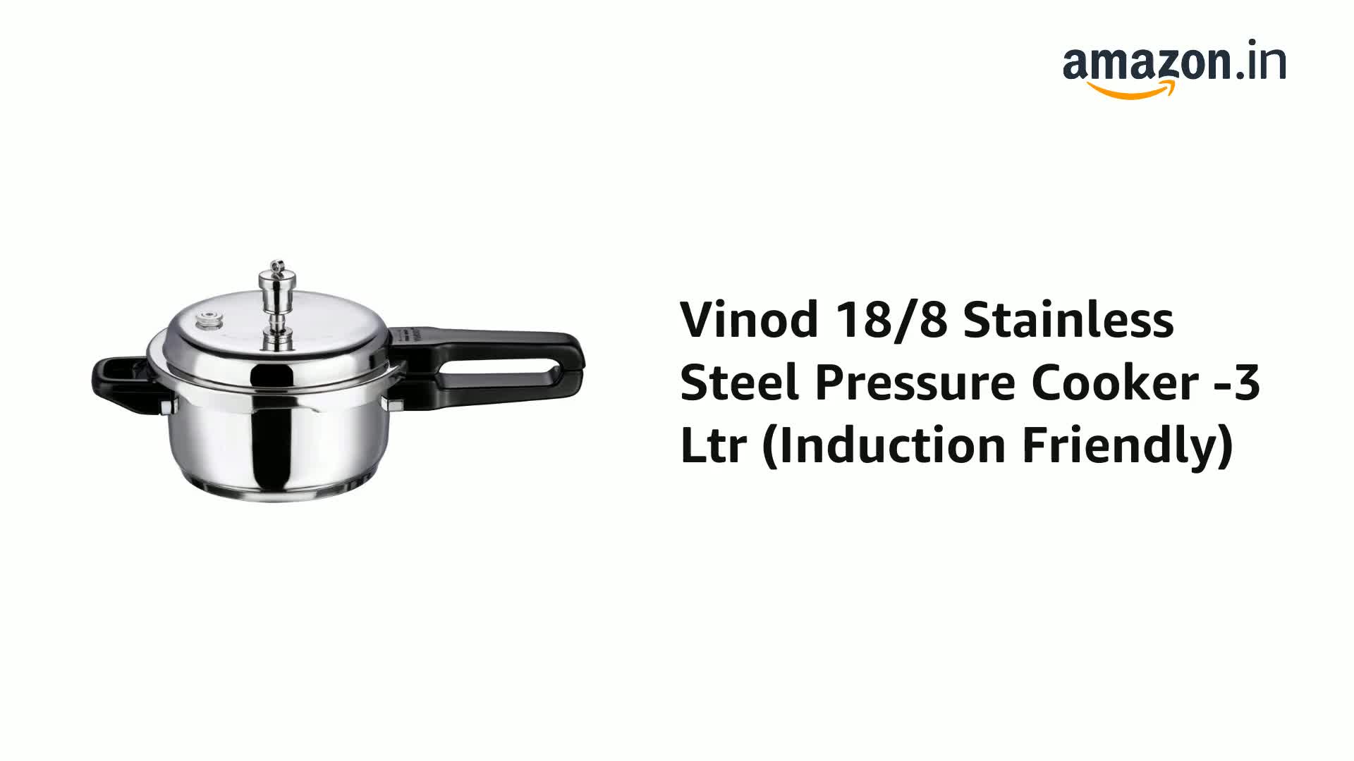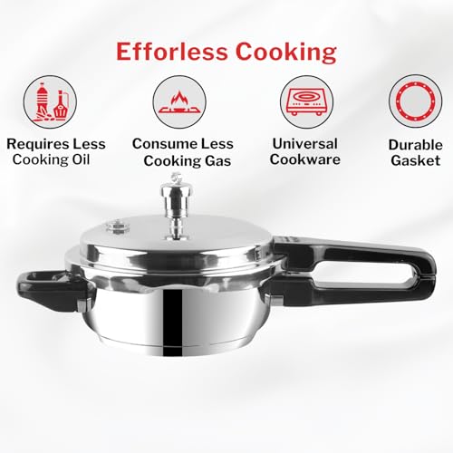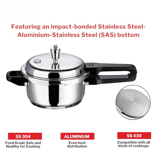Vinod 18/8 Stainless Steel Regular Outer Lid Pressure Cooker - 3 Litres (Induction and Gas Stove Friendly) Silver ISI and CE certified with 2 Years Warranty