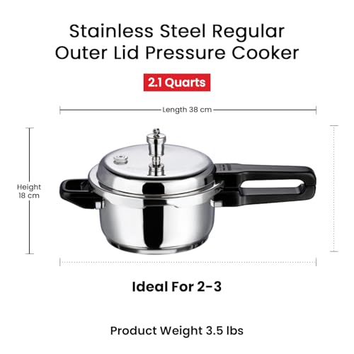 VINOD 18/8 Stainless Steel Sandwich Bottom Outer Lid Pressure Cooker (2 LTR)