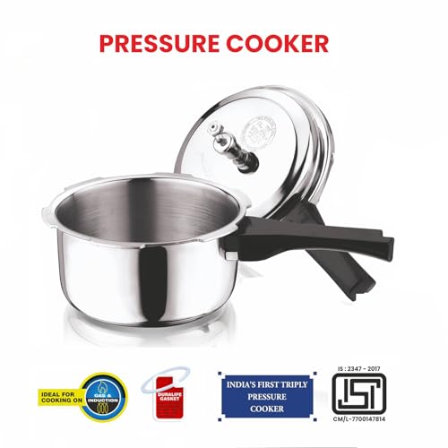 Vinod Platinum triply stainless steel series is made up with SAS technology which is a triple layer construction of stainless steel aluminium and stainless . The inner layer is made up of food grade 18/8 stainless steel which is hygienic stainless steel and rust free.The middle layer is consists of aluminium throughout this ensures in even heat distribution and uniform cooking of food. The third layer is made of 430 stainless steel for induction compatibility.
