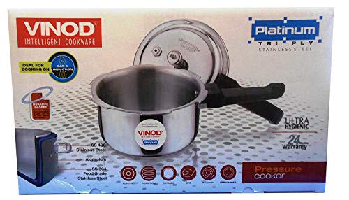 Color: Silver Material: Stainless Steel Layer 1-food grade 18/8 stainless steel used in the inner surface for healthy cooking Vinod pressure cookers are aesthetically designed and professionally manufactured using premium imported Aluminum stainless steel at state of the art manufacturing facility using latest technology and best manufacturing practices after undergoing stringent tests procedures. Our pressure cookers are energy efficient for healthy and nutritious cooking. Its sandwich base is induction hob compatible which ensures even heat distribution and saves time. Rigorously tested safety valve and gasket release system makes it safe product for everyday use.