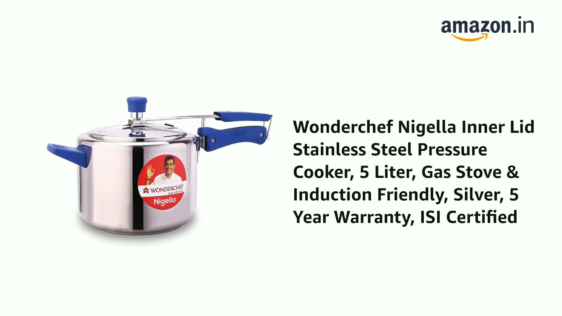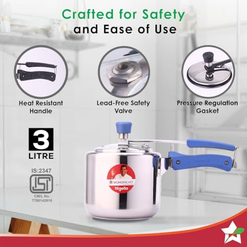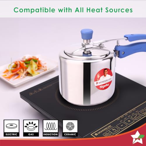 Nigella Cookers are beautifully crated from 304 stainless steel and proudly adorn classy so-touch handles. Strong body construcon with enhanced safety. 304 stainless steel does not react with food and never rusts. 3-ply base for quick heang. Steel-aluminum-Steel layers save energy and prevent burning of food. Make Biryani Pulao Curry Dal Soups Rice Steamed dishes Cake and so much more. Quality gassket with longer life. Electric gass and Induction friendly. A perfect soluon for all your daily cooking requirements. Reliable Wonderchef Warranty T&C apply.