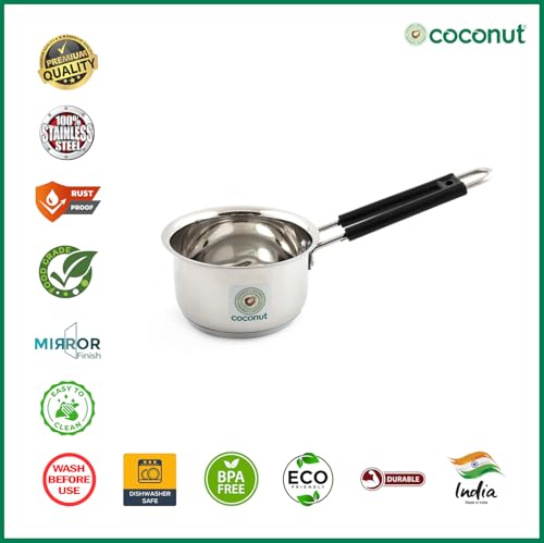Coconut Stainless Steel Plain Sauce Pan - 1 Unit - Capacity - 800 ML, Color - Silver - Dimension -15 Cms