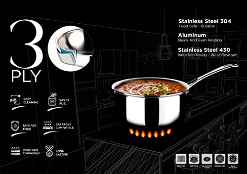 Crystal TriPro -Triply Stainless Steel Saucepan with Lid - 14 cm (Induction Bottom), Silver (CTP-SP-001)