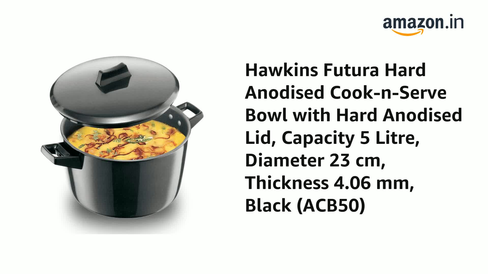 Hawkins Futura 5 Litre Cook n Serve Bowl, Hard Anodised Saucepan with Hard Anodised Lid, Sauce Pan for Cooking and Serving, Black (ACB50), Aluminium