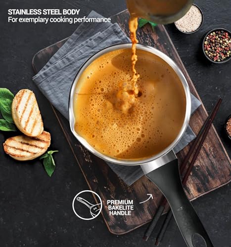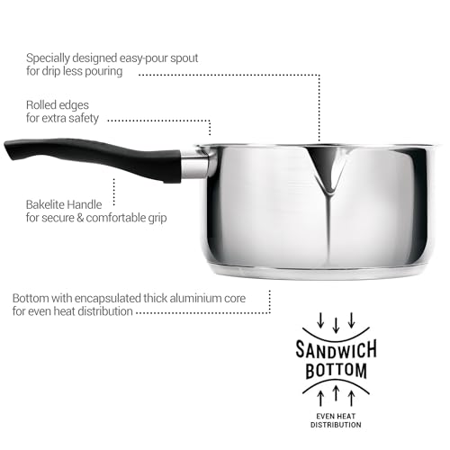 • Specially designed easy-pour spout for pouring your favourite beverage to your mug or bowl. It is Dishwasher safe pan for ease of cleaning and maintaining your pan.