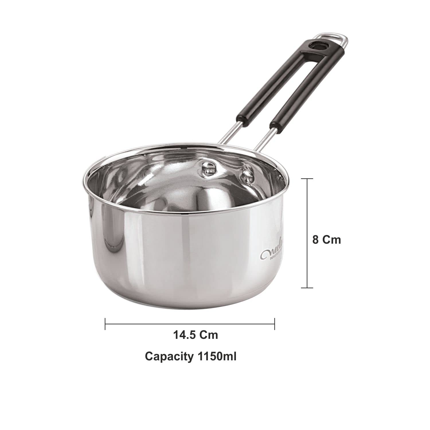 High-Quality Material: Made from premium stainless steel ensuring durability strength and long-lasting performance with resistance to corrosion and rust. Ideal Capacity: With a 1150 ml capacity it is perfect for preparing moderate portions of sauces soups stews and other liquid-based dishes. Heat-Resistant Wire Handle: Equipped with a heat-resistant wire handle providing safe comfortable handling even when the saucepan is hot. Durable & Long-Lasting: The saucepan is designed to withstand everyday use resisting stains scratches and wear over time.