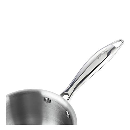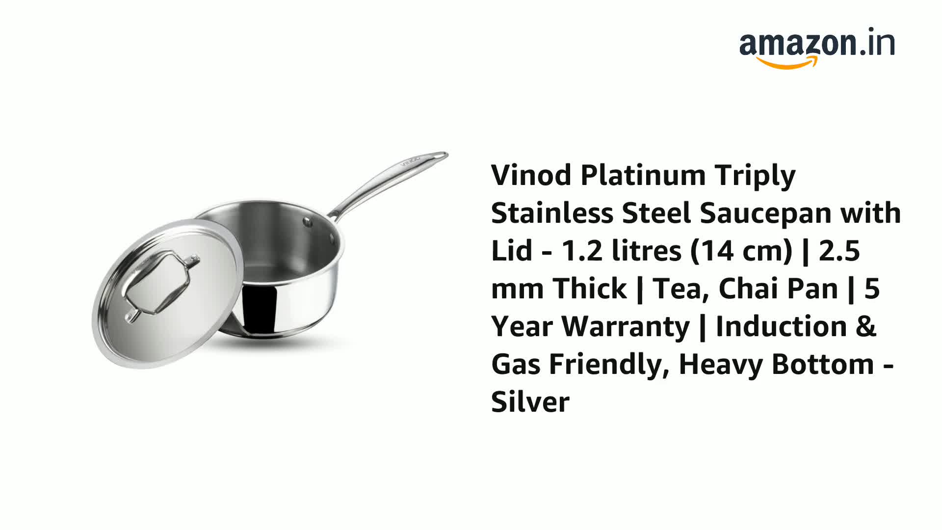 Vinod Platinum Triply Stainless Steel Saucepan with Lid - 1.2 litres (14 cm) | 2.5 mm Thick | Tea, Chai Pan | 5 Year Warranty | Induction & Gas Friendly, Heavy Bottom - Silver