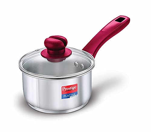 Prestige Platina Popular Stainless Steel Gas and Induction Compatible Sauce Pan with Glass Lid, 160 mm