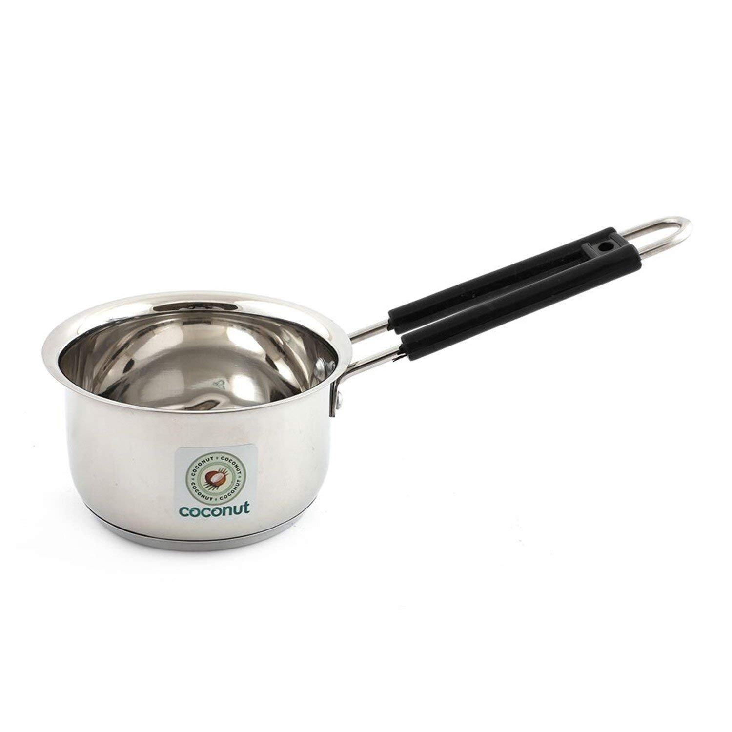 Coconut Capsulated Sauce Pan : Highly durable and made of fine quality stainless steel Never Gets Spoiled by heat heats faster and evenly cooks food Stainless Steel Pan Easy to Serve Easy Flow of Heat Easy to clean and wash they have very exotic silver shining Non-toxic and non staining and non reactive with foods Induction Base Friendly Product works on gas stove and induction stove as well. cookware can be used to cook and directly serve and food doesn't stick or burn easily as it spreads heat evenly. Looking new for years one time investment Elegant looks long lasting built cool Bakelite strong handle ss double screw Different sizes useful for different need of kitchen.