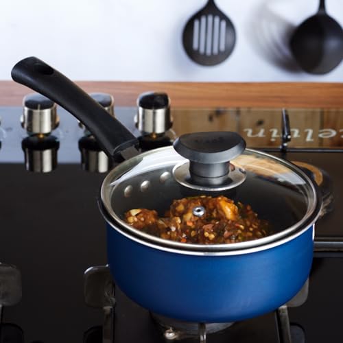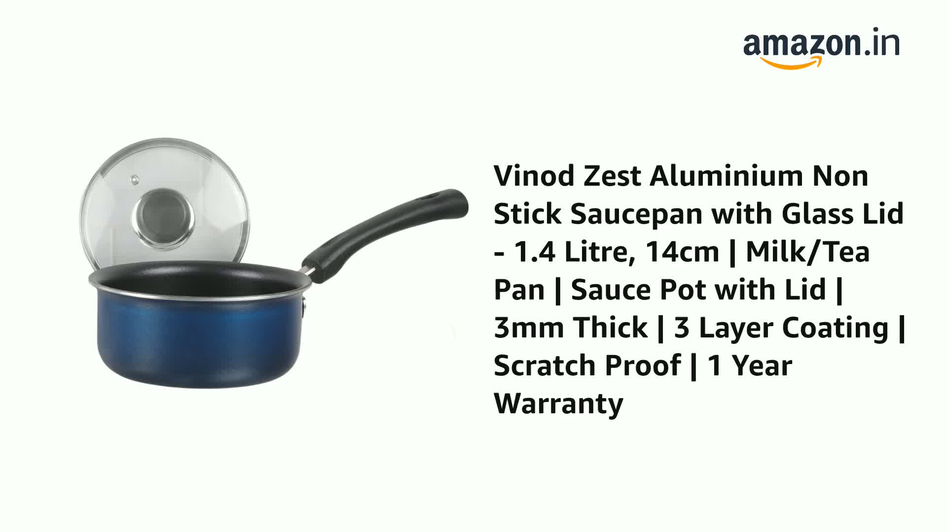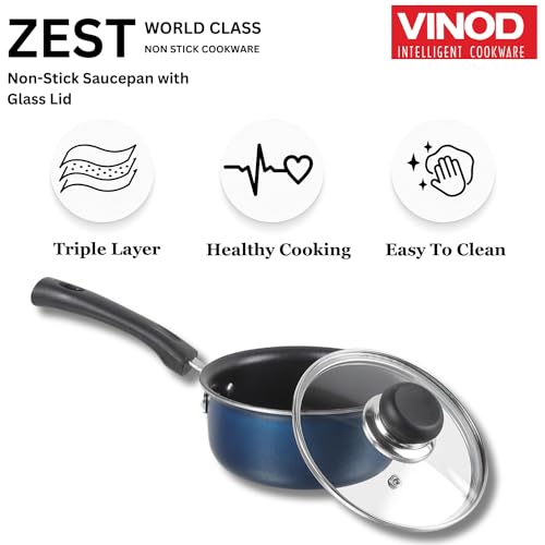 Vinod's Zest Non stick cookware is made up of triple layer non stick coating which is scratch proof .The non-stick coating ensures that you use minimal oil. The thick aluminium helps you cook food without burning and is extremely durable. The handle is heat resistant and has rivets for better grip. As it is non-stick the oil does not form any hard layer making it easy to clean it. A soft sponge with some soapy water is enough to get the greasiness off. Additionally because of its scratch-resistant coating you can use metal spoons without peeling the external coating off. This non stick saucepan is gas stove compatible. It is free from PFOA heavy metals and harmful chemicals. So much better than cheap coatings that peel off and lose effectiveness within a few months of use. It is ideal for making tea coffee saucesgravies curries cooking food for infantsreheating food and tadkas. It comes with tempered glass lid which allows you to see through the cooking process.