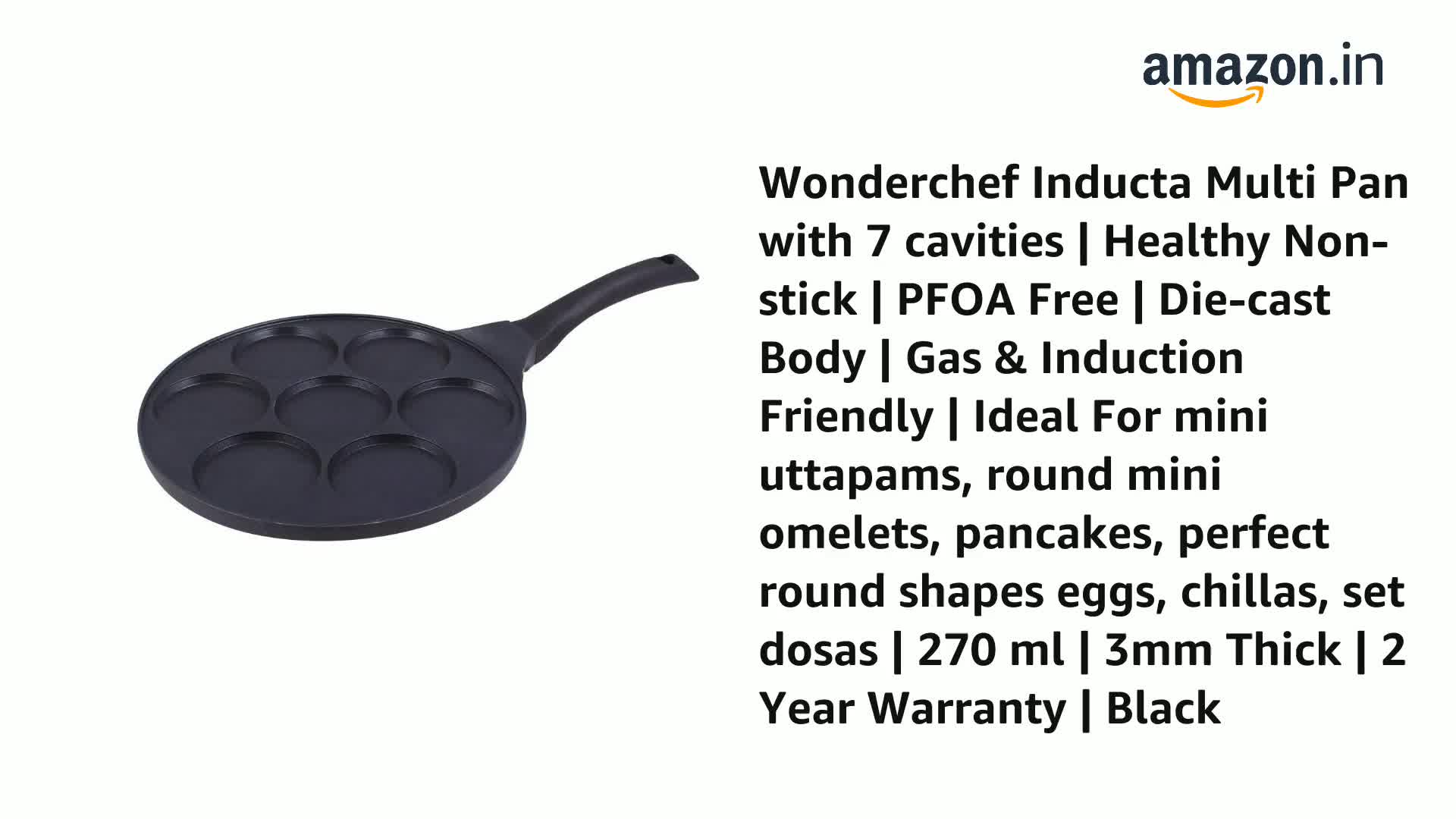 Wonderchef Inducta Multi Pan with 7 cavities | Healthy Non-stick | PFOA Free | Die-cast Body | Gas & Induction Friendly | Ideal For mini uttapams, round mini omelets, pancakes, perfect round shapes eggs, chillas, set dosas | 270 ml | 3mm Thick | 2 Year Wa