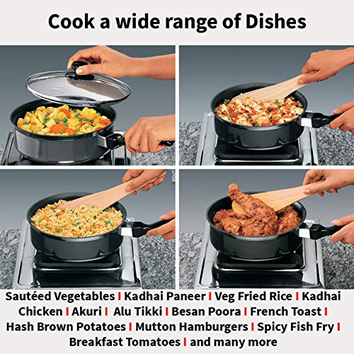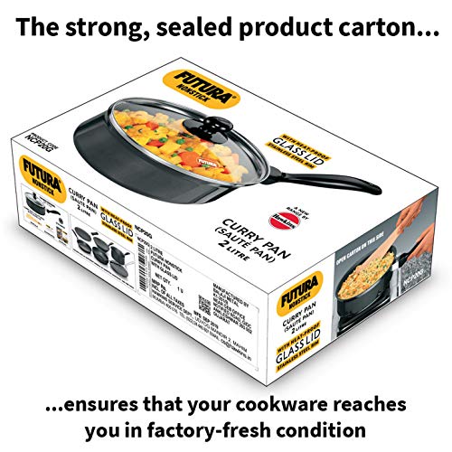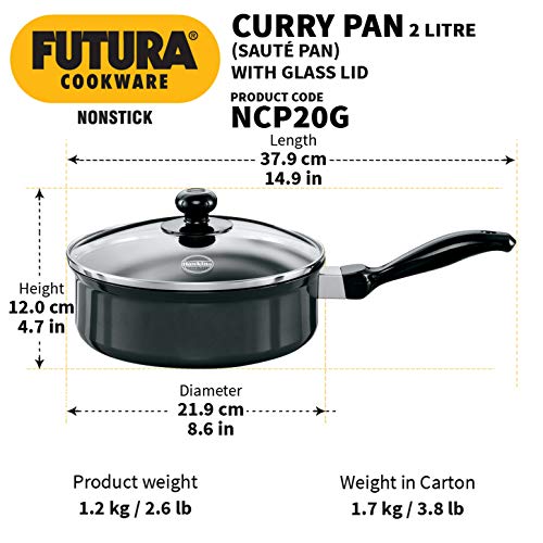 Hawkins NCP20G Futura Nonstick Curry, Saute Pan with Glass Lid (Capacity 2 L, Diameter 20cm, Thickness 3.25 mm, Black) (Q62)