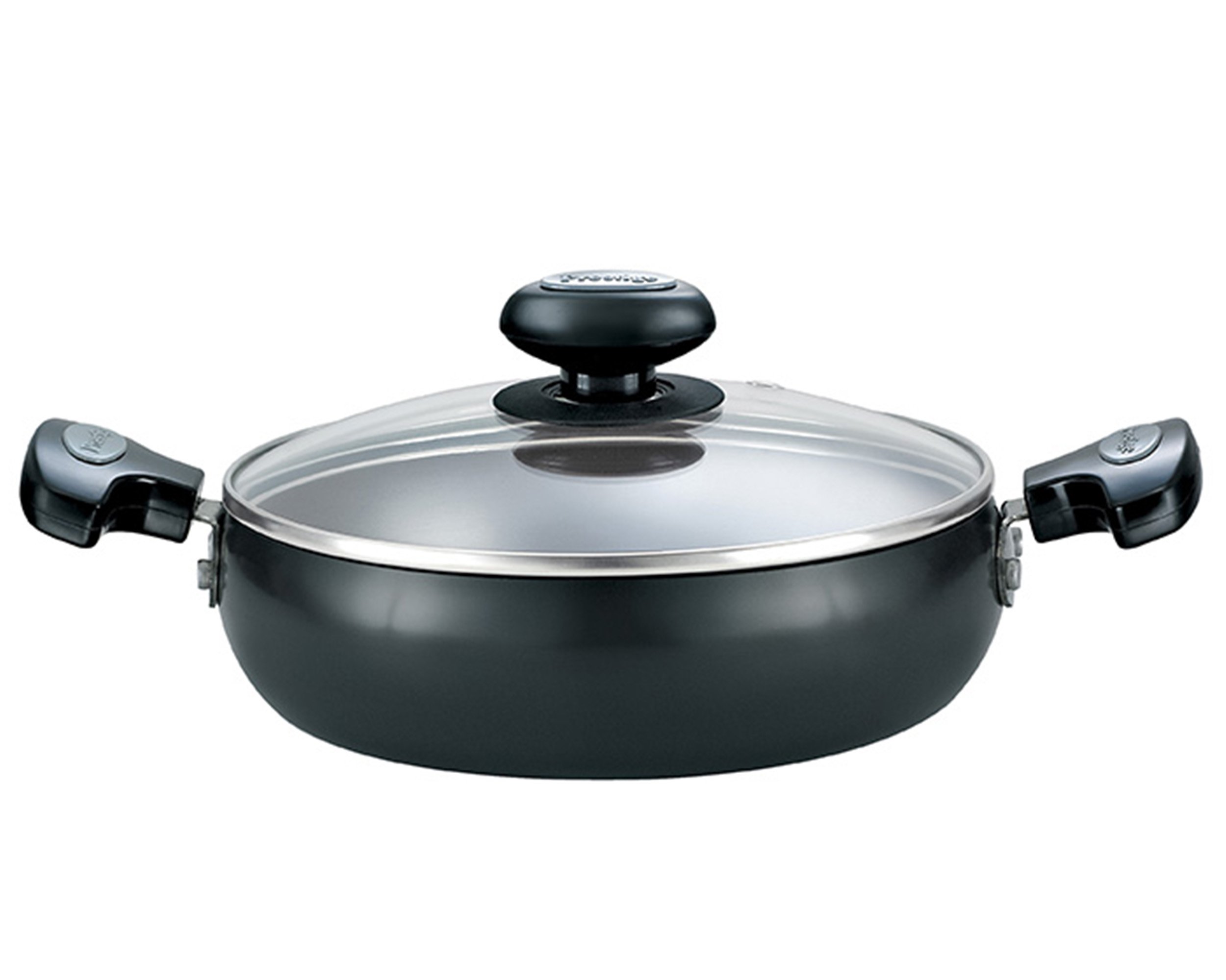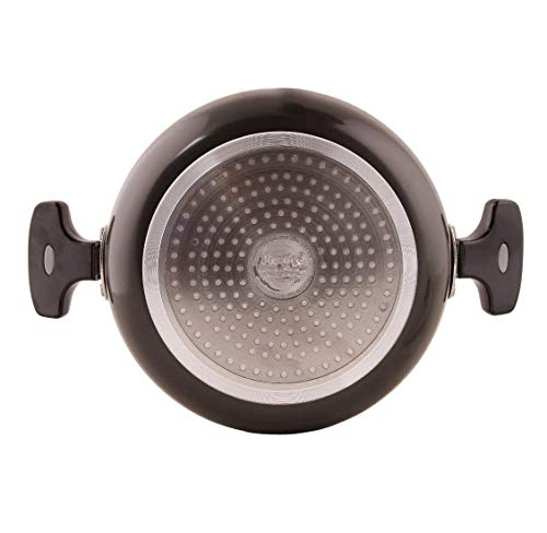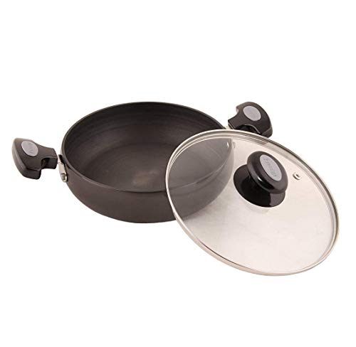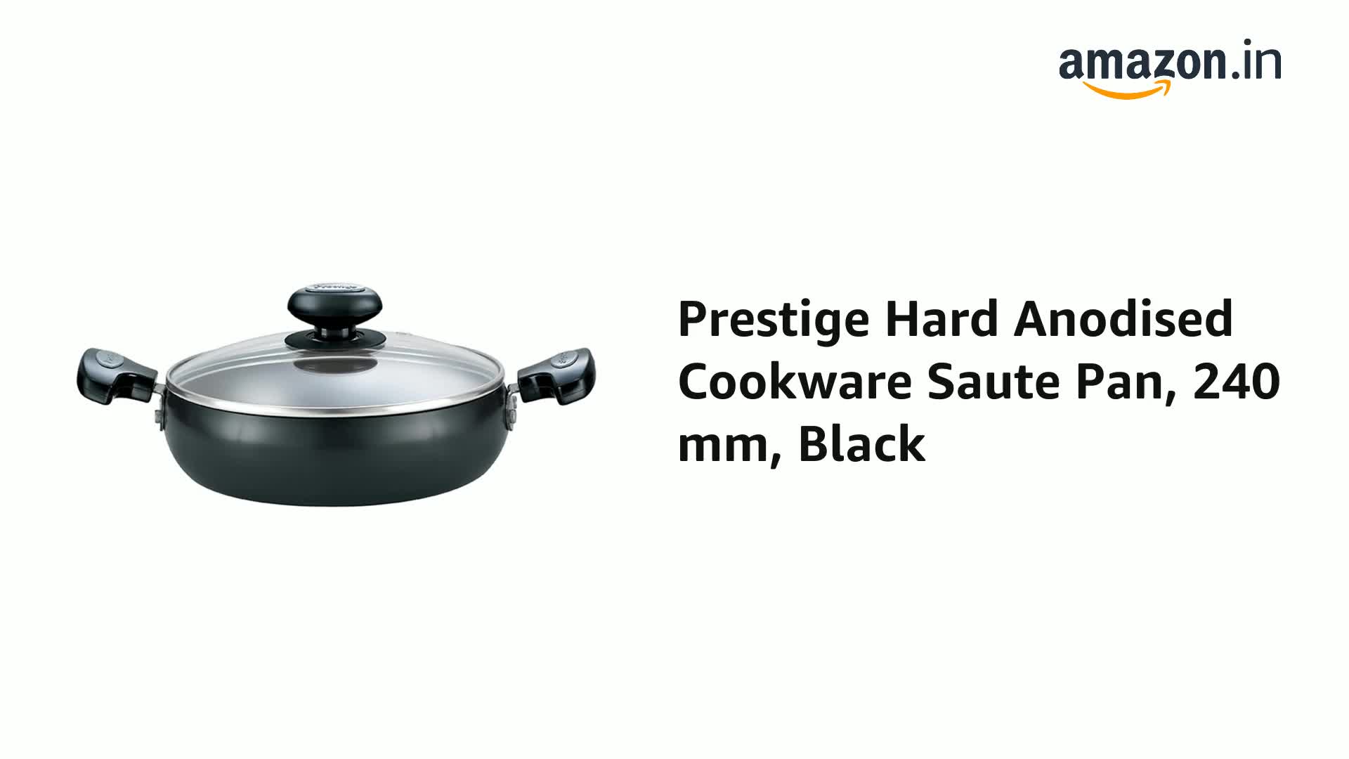 • Material: Hard Anodised Aluminium; Size: Saute Pan (240 Mm); Base type: Induction Base; Base thickness (in mm): 3.25; Included components: 1 Saute Pan; Colour: Black