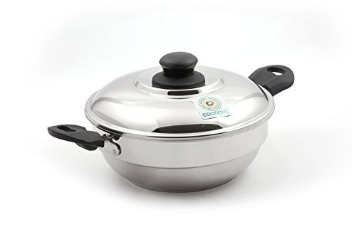 Coconut Stainless Steel Idly Steamer - 8 Idly, Extra Thick Sandwich Bottom Base -Works on Gas and Induction Stove - Works as a kadhai and Steamer Also
