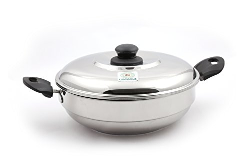 Coconut Stainless Steel Idly Steamer - 13 Idly - Extra Thick Sandwich Bottom Base -Works on Gas and Induction Stove - Works as a kadhai and Steamer Also
