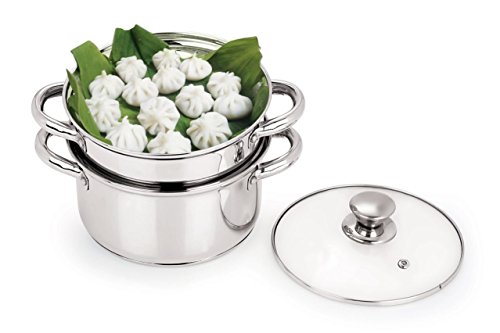 1 Pristine Stainless Steel Induction Base Tri Ply 2 Tier Multi Purpose Steamer / Modak Maker With Glass Lid