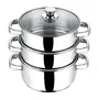 Vinod Stainless Steel 3 Tier Steamer/Momo/Modak Maker with Glass Lid & Riveted Handles- 20 cm (Induction and Gas Stove Friendly), 2 Year Warranty, Silver