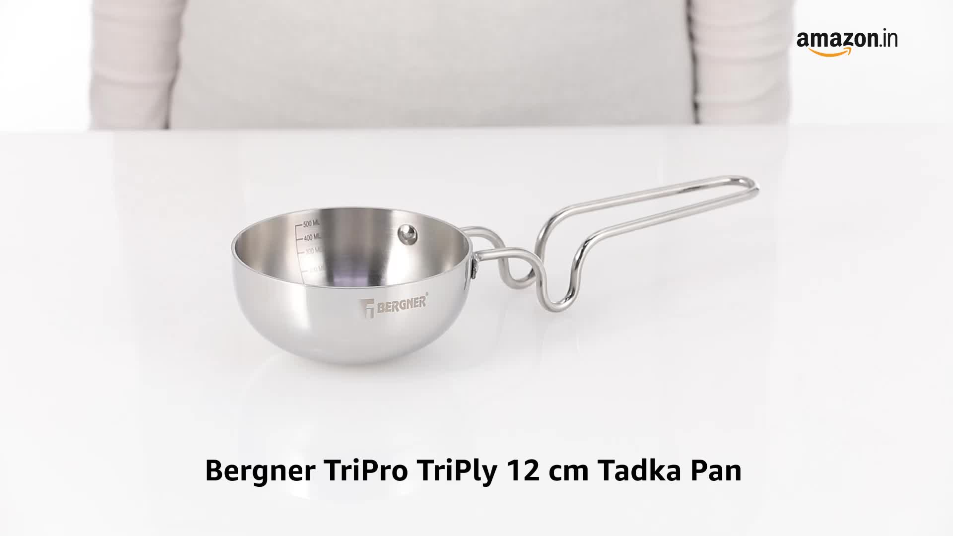 Bergner TriPro TriPly Stainless Steel 12cm Tadka Pan, 500ml Capacity, For Spice Tempering/Seasoning, Long Wire Handle, Laser-Etched Scale, Smooth Finished Surface, Induction Bottom and Gas Stove Ready