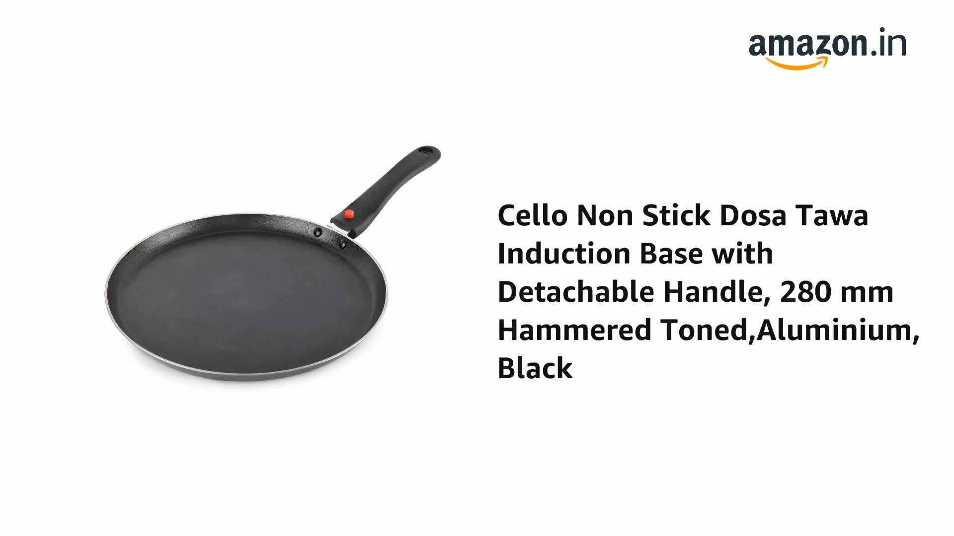 Cello Non Stick Dosa Tawa Induction Base with Detachable Handle, 280 mm Hammered Toned,Aluminium, Black