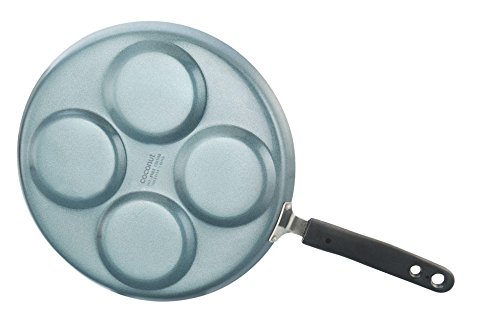 """Coconut"" brand is range of high quality home and kitchen. Coconut nonstick panyarkal is made from high quality food grade aluminium with imported coating from XYLAN non stick coat is free from any harmful chemicals or heavy metals such as lead. Coconut mini uthapam tawa with bakelite handle handles is heat resistant and long lasting. Product is made from 3 layer nonstick which will last for a long period and supports the usage of metal spoons. It is ideal to make small sized uthapams or mini set dosa Product is 29 cm wide each pit is 4 inch wide."