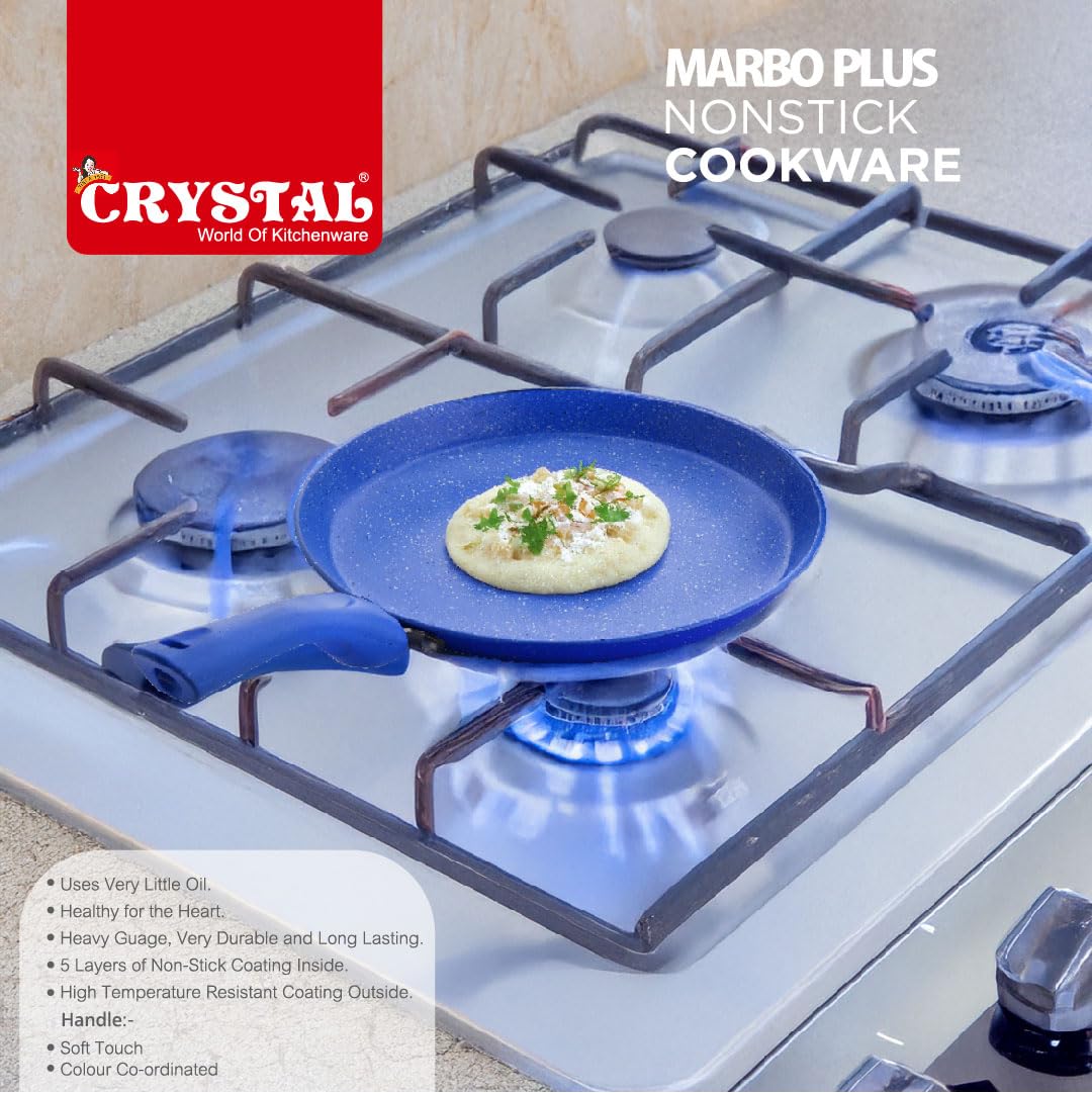 Crystal Marbo Plus Induction Bottom Nonstick Flat Tawa/Dosa Tawa | 280 mm | Thickness: 3mm | 5 Layer Coating | Metal Spoon Friendly | Blue