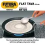 Futura Flat Tava can cook roti (flat breads) phulka (puffed unleavened bread) and paratha (layered unleavened breads) - all staple foods in India. Flat Tava can also well cook cutlets eggs pancakes French toasts griddle cakes and the like. In addition the flat cooking surface is particularly useful in making foods using liquid batter that require careful spreading and helps retain the shape more evenly. The rim contains batter and cooking oil better with less spillage and greater safety. Flat Tava are hence particularly preferred for cooking popular South Indian snacks such as dosa and uttapam or for making pancakes. Futura Nonstick Flat Tava are particularly preferred for their heavy gauge and well-balanced pans that make cooking easy and the results are delicious. The stainless steel handles are stay-cool and comfortable. The cooking surface is made of PFOA-free with a unique patented process by which high quality nonstick coating (made in Germany) is locked firmly into the tough Hard Anodised surface underneath. Therefore the nonstick if used properly would last longer than the ordinary nonstick. Flat Tava is suitable for domestic gas electric ceramic and halogen cooktops.