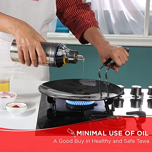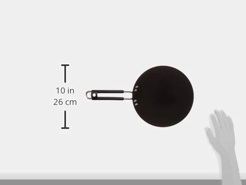 Size:25cmBring home this tawa and enhance your cookware collection. Crafted from hard anodised material it lasts long and is induction friendly. It also comes with a strong handle that makes it easy to use. Moreover the non stick coating makes it more utilitarian. Dimensions: 26 x 8 cms.