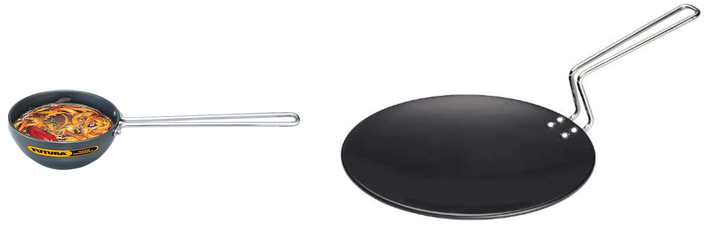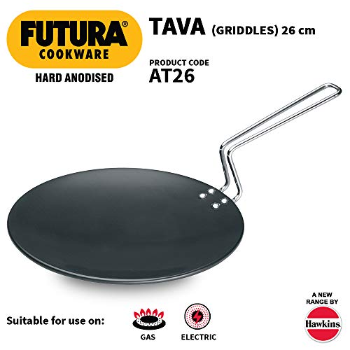 Hawkins Futura Hard Anodised Tawa 26cm BlackPremium Quality Hard Anodised Tawa for Everyday Use Cook delicious parathas in an efficient manner using the Prestige Futura hard anodised tawa. With a solid build quality and a sturdy metal handle this tawa has the perfect concave design to help you cook lip-smacking parathas rotis dosas and much more. Compatible with gas stovetops this tawa is ideal for everyday use in the kitchen. The concave bottom and hard anodised material enables faster and even cooking which results in crispier and tastier food. Made from Robust Material Built to Last Build using hard anodised aluminium the Prestige Futura tawa is built to last for a long time and can withstand the rigours of daily use. The durable material and scratch resistant surface also enables the use of metal ladles and spoons providing further ease of use. It features a sturdy handle that stays cool even while cooking making it easy to handle. Available in a unique black colour this tawa can retain its looks for years to come. Its elegant design helps in improving the overall look and feel of your kitchen décor.Hawkins - L34 Futura Hard Anodised Tadka Spice Heating Pan 2 Cup480ml/3.25mm Thickwith handle black colour hard anodised