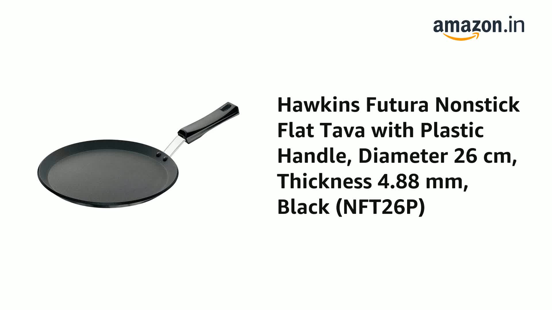 Hawkins Futura 26 cm Flat Tava, Non Stick Tawa with Plastic Handle, Tawa with Rim, Pancake Pan, Flat Pan, Black (NFT26P)