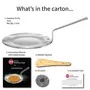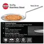 Hawkins Tri-ply Stainless Steel Tava is designed to give you all the advantages of cooking in stainless steel while minimizing the divantages of sticking and burning that are normally associated with ordinary stainless steel. The cooking surface (inner surface) is made from 18/8 food-grade (AISI 304) stainless steel which is extremely hygienic most durable does not react with most foods and does not pit or corrode. The heavy gauge aluminium core spreads heat well for even cooking with no hot spots and retains heat for quick cooking. It is sandwiched between two layers of stainless steel and does not come in contact with food on the cooking surface. The base (outer surface) is made of AISI 430 grade magnetic stainless steel. Hence this cookware can be used on all domestic induction electric ceramic and halogen cooktops. Hawkins tri-ply stainless steel Tava is durable well-balanced and stays flat for quick cooking on induction and electric cooktops. The 3.5 mm extra thick tava has a unique shape with a flat base and gentle slog sides has just the right curvature for optimal cooking results - oil does not pool nor spill over the sides. The placement of the rivets is carefully designed to maximise the cooking area. The strong 6.0 mm thick stainless steel stay-cool wire handle is comfortable and safe to hold even when the tava is hot.
