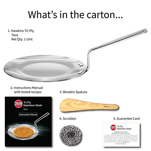HAWKINS 22 cm Tava Triply Stainless Steel Tawa with Stainless Steel Handle Induction Tawa Silver (SSTV22)