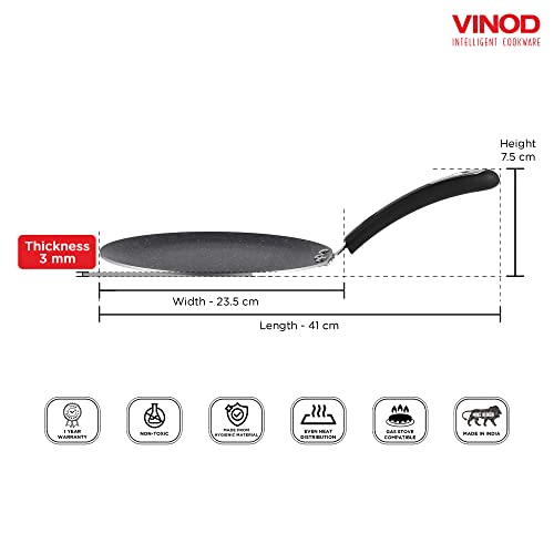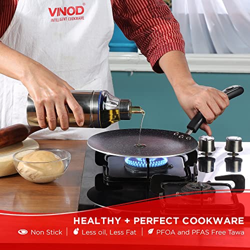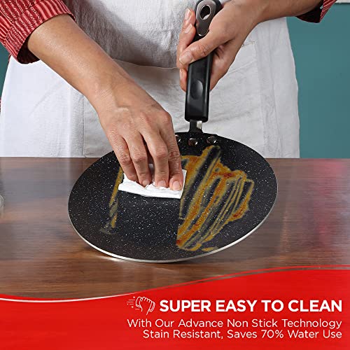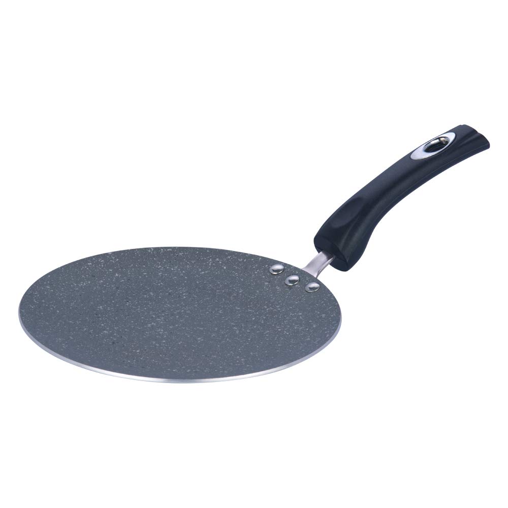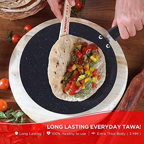 Vinod Zest Marbilo Aluminium Non Stick Concave Tawa - 24 cm | Roti/Chapati Tawa | 3 mm Thick | 5 Layer Coating | Stain Resistant | Induction & Gas Base | 1 Year Warranty