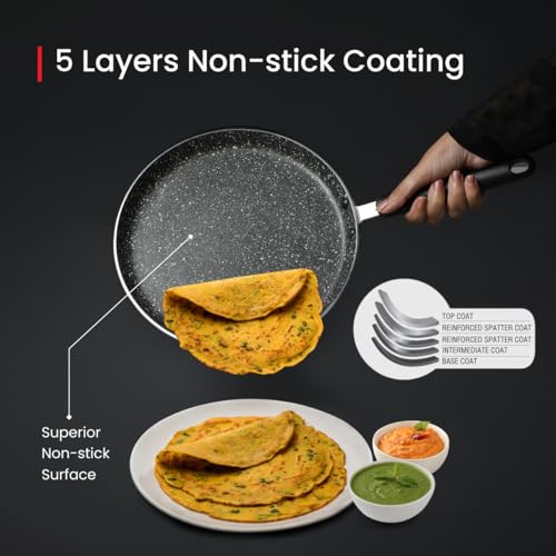 Prestige Omega Deluxe 25cm Granite Dosa Tawa|Non-Stick with 5 Layers Coating|Dishwasher Safe|Stainfree Interior|Gas & Induction Compatible|2 Years warrnty