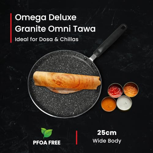 • Package Contents: 1-piece Omega Deluxe Granite Omni Tawa (250mm)