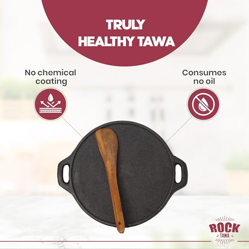 Perfect and Round Dosas with Added Nutrition Go traditional with this Rock Dosa Tawa pan made out of pre-seasoned cast iron. Make round dosas with ease that are not only spectacular looking but also nutritious and healthy. You can now embark on your new diet plan with convenience. You dont have to worry about consuming more oil in your dosas as the cast iron absorbs the oil and evenly cooks them to perfection. Eat as many dosas as you want with less guilt. Cook Crisp and Thin Dosas with Ease This Rock Dosa Tawa pan is constructed in the right size of 12 inches which makes perfect sized dosas to be served fresh and hot. The pan has skillet-like feature with narrow edges. This makes it easy to pick and flip the crisp and thin dosas as well as turn them onto a plate to serve or in a hot-box. Since the Rock Dosa Tawa is made of pre-seasoned cast iron food cooked in this pan doesnt interact with the chemicals but instead increases the iron content in the food being cooked in it. It also heats up faster thus requiring less time to cook the dosas evenly. Long Lasting Convenient to Maintain and Versatile Since the Rock Dosa Tawa pan is made out of cast iron you can maintain it with ease. You can easily clean and stack it with the rest of your pans and pots at home. Also cast iron is meant to be durable and sturdy thus this Rock Dosa Tawa pan will last long. Moreover the pan will not suffer from bends and cracks. This Rock Dosa Tawa pan can be used on gass electric as well as induction cooktops making it a very versatile pan. It can also be used for making pancakes omelettes as well as frying food.
