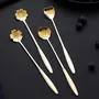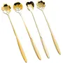 HASTHIP® Golden Spoon Set/Coffee Spoon/Dessert Spoon/Cutlery Kitchen Tableware/Stainless Steel Gold Flower Shape Coffee Spoon with Package Bag 18cm 4 Pcs Different Coffee Spoon